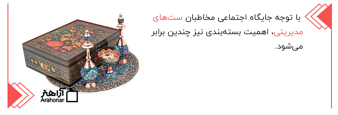 - ستهای مدیریتی شامل انواع مختلفی از هنرهای اصیل ایرانی