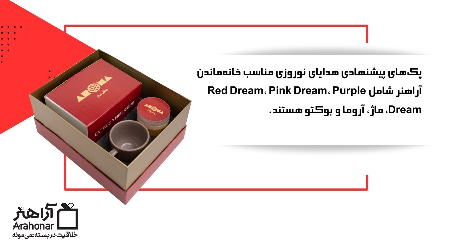 و بهخصوص در این بخش آراهنر آنچنان هدایای هیجانانگیزی دارد که ممکن است خودتان هم تصمیم بگیرید که در خانه بمانید! برای نمونه میتوان به هدایای نوروزی سازمانی خاص زیر اشاره کرد: