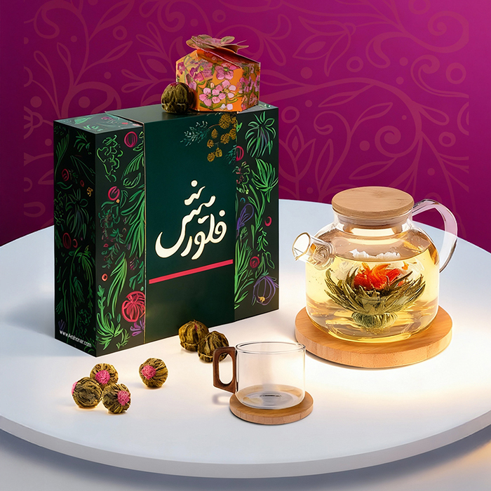 در یلدا، نوشیدن تنها حس یک طعم خوش نیست؛ تماشا هم هست. با چای بلومینگ، هر جرعه با شکوفایی یک گل آغاز می‌شود. قوری شیشه‌ای و لیوان‌های چوبی این تجربه را کامل می‌کنند؛ ترکیبی از زیبایی، آرامش و طعم.