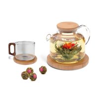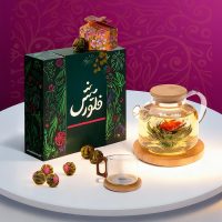این بسته شامل: چای بلومینگ ۱ عدد قوری شیشه‌ای ۲ عدد لیوان چوبی (شیشه + زیرلیوانی چوبی) جعبه مقوایی طراحی‌شده