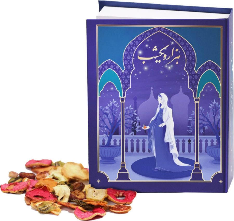 هزار و یک شب (جعبهای با طرح کتاب و میوههای خشک)