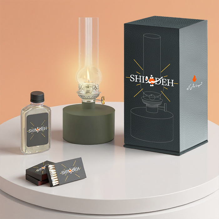 شیده یک چراغ نفتی سرامیکی است که با الهام از چراغهای نفتی قدیمی طراحی شده. شعله گرم و آرام آن، با بوی نوستالژی نفت و حس خوش روشن کردن با کبریت، قصه ای متفاوت از روشنایی در تاریکی شب بلند یلدا را روایت می کند.