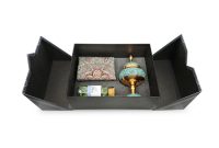آراهنر برای بستهبندی هدایا، هم به جنبه زیبایی و هم به جنبه کاربردیبودن دقت فراوان دارد. آیتمهای این هدیه داخل یک هارد باکس شیک قرار دارد و این آیتمها جوری قرار گرفتهاند که در اثر حرکت و جابهجایی، هیچ ضربهای به آنها وارد نمیشود و آسیب نمیبینند.