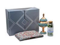 بسته «V264» یک هدیه لوکس است که برای سازمانهایی که به فکر تهیه یک هدیه ارزشمند هستند، مناسب است. ترمه و شکلاتخوری فیروزهکوب جزو مهمترین صنایعدستی ایران است که برای بسیاری از افراد یک هدیه دوستداشتنی محسوب میشود.