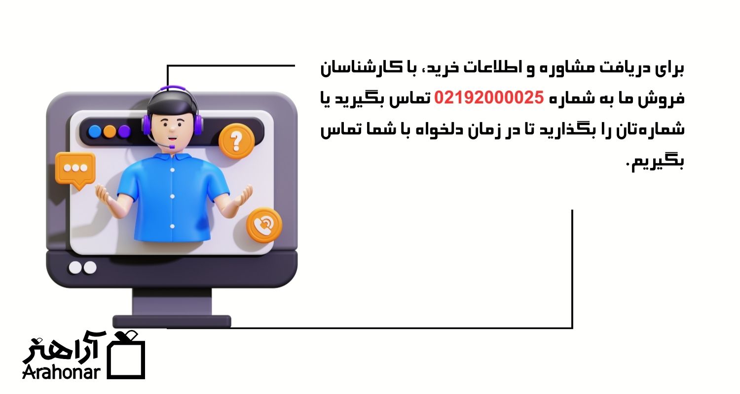 برای این منظور کارشناسان فروش ما در خدمت شما هستند: فقط کافیست که با شمارهٔ 02192000025 تماس بگیرید؛ آنها دربارهٔ قیمت و دستهبندی هدایا، چگونگی خریدشان، موعد تحویل سفارش شما و… راهنماییتان خواهند کرد. البته اگر فعلاً فرصت چنین مکالمهای را ندارید، خیلی ساده شمارهٔ خود را برای ما بگذارید تا در هر ساعتی که تمایل داشتید با شما تماس بگیریم!